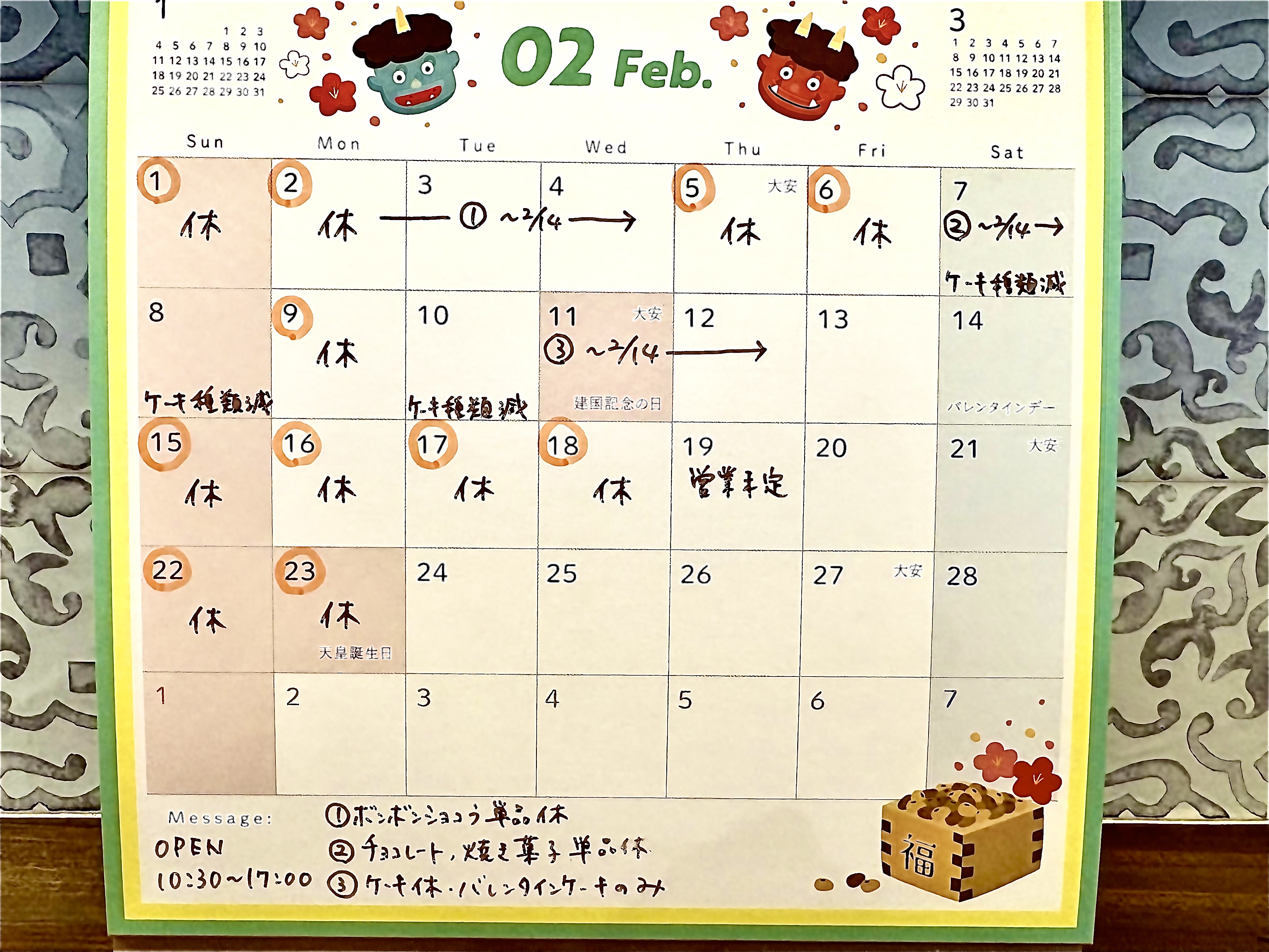 (2月7日・8日、10日はケーキの種類を縮小して販売いたします)