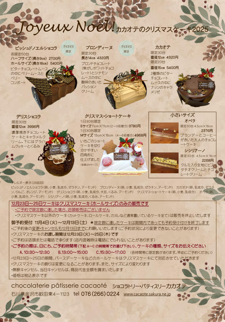 11月6日まで掲載していたクリスマスリーフレットのアレルギー表示に誤りがありました。